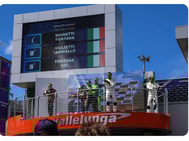 In 2021, that passion took a new direction through sim racing. What started as a pastime quickly transformed into a competitive path. By 2022, Vittorio was taking part in ACI Esport Italian championships, consistently proving he had the pace and mindset to compete at a high level. His growth was shaped at DSC Vallelunga, a professional simulation center inside the Vallelunga Circuit, where he later became an instructor.